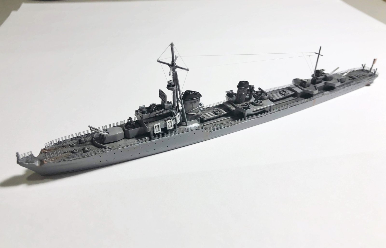 This process is not just about aesthetics; for me, it is a therapeutic exercise that challenges my fine motor skills and focus. The transformation of the German Destroyer Z-Class Tamiya 1/700 after adding the metal railings is truly remarkable.