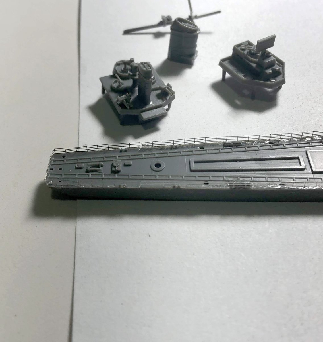 - Patience: Take breaks. Working on 1/700 scale railings can be tiring for the eyes.